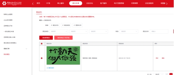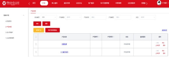 2.页面弹出“同步成功”后,点击页面上方的“CF奖”,然后在页面左侧点击“产品申报”查看参选产品,在产品列右侧点击“修改”可以对产品信息进行核对补充。